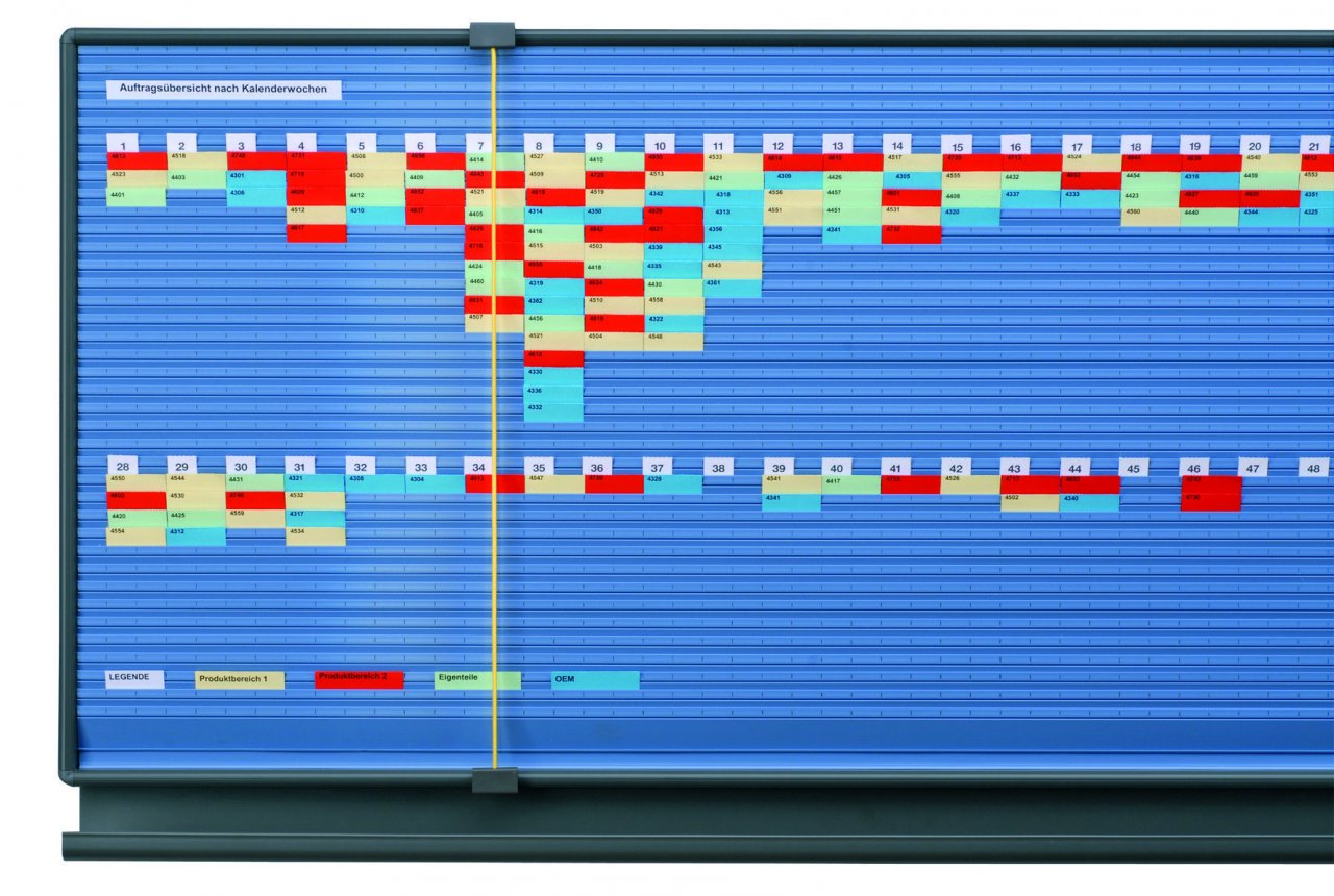 So bekommt jeder Mitarbeiter einen guten Überblick über die anstehenden Aufgaben sowie über Start- und Endtermine. Unsere Plantafelsysteme können Sie für variable Ressourcen wie Mensch, Maschine oder Projekt einsetzen und erhalten so einen schnellen Überblick über Projektstatus, Auftragsplanung, Kapazitätsverfügbarkeit oder Urlaub und Ab- & Anwesenheit Ihrer Mitarbeiter. In der rollierenden Ausführung „aktualisiert“ sich die Tafel mit einem Handgriff. Der modulare Aufbau aller Tafeln ermöglicht jederzeit eine Erweiterung des bestehenden Systems. Für ihre Belegsteuerung bieten wir viele verschieden Lösungen an die sich individuell nach ihrer Beleggröße und der Anzahl der zu steuernden Belege richtet. Egal ob es einzelne oder umfangreiche Belegstapel sind. Wir lösen ihre Anforderung!